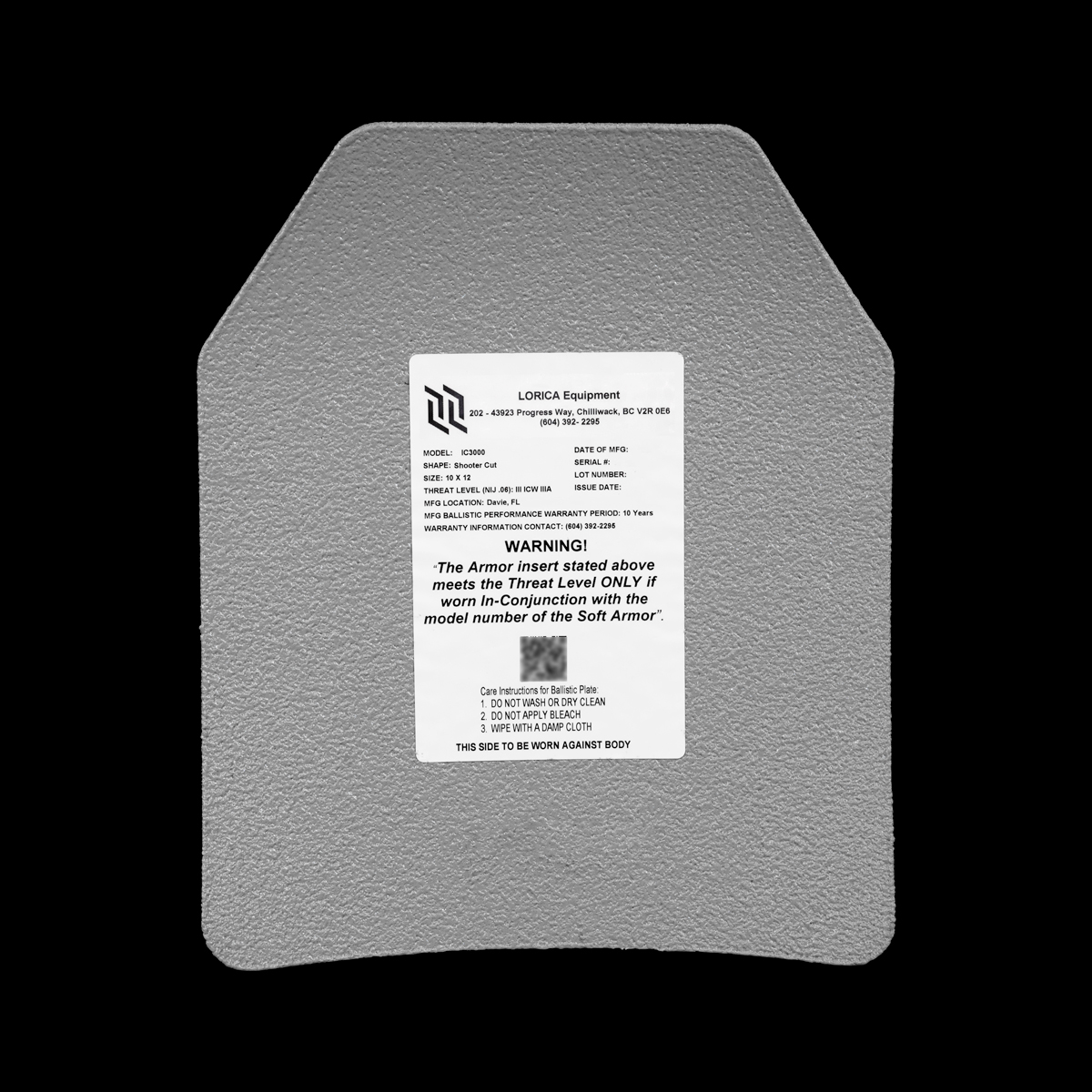 - Ten (10) Year Warranty on Ballistic Performance