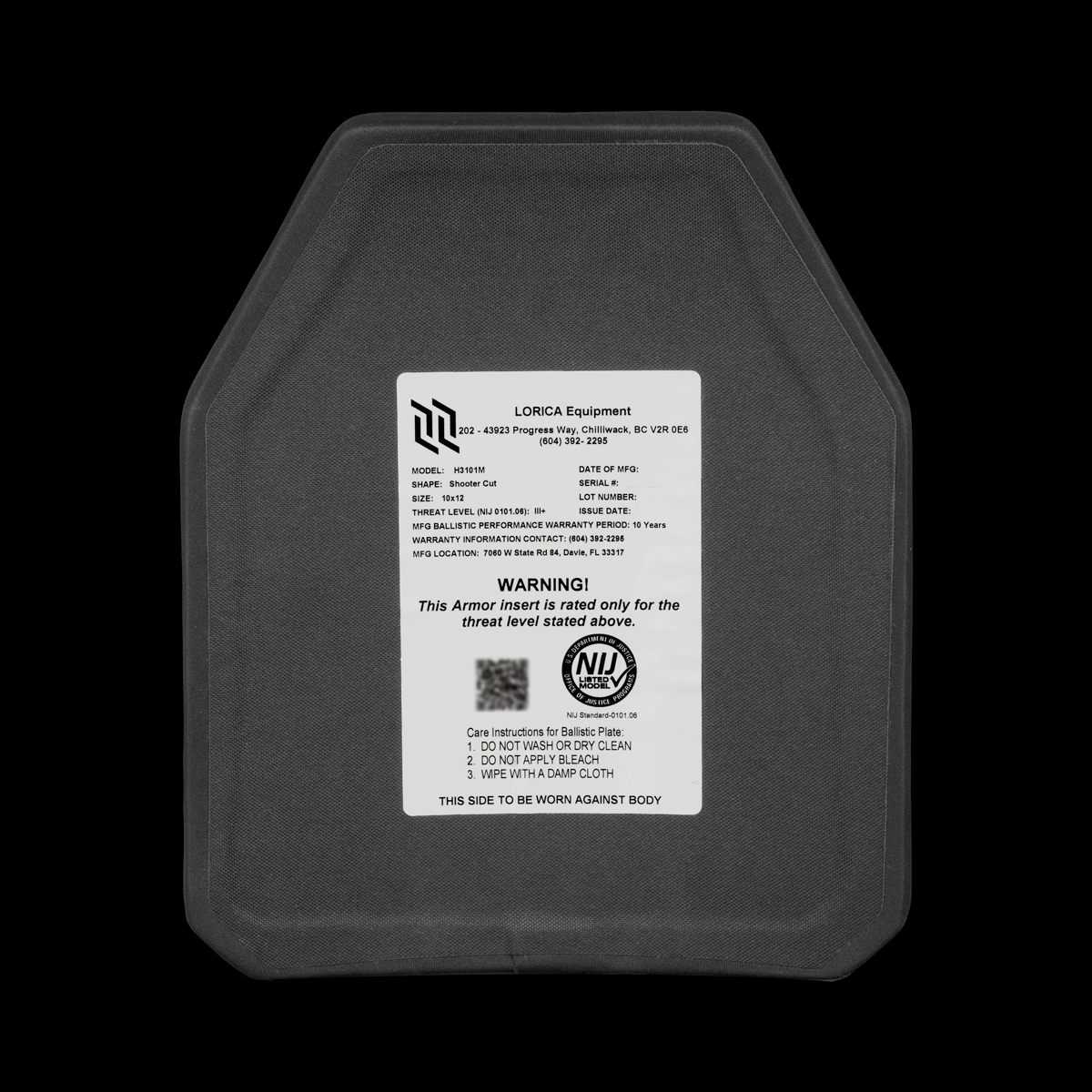 - NIJ 0101.06 Certified Level III, Model H3101M