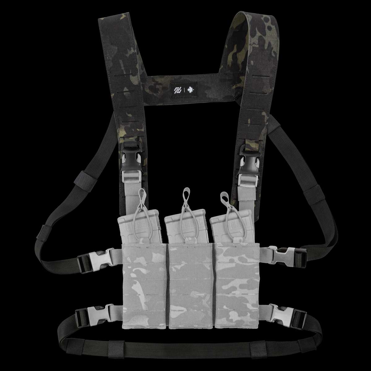 The H-harness is compatible with all LORICA chest rigs and placard systems. This item does not include the chassis, magazine inserts, or any other accessories.