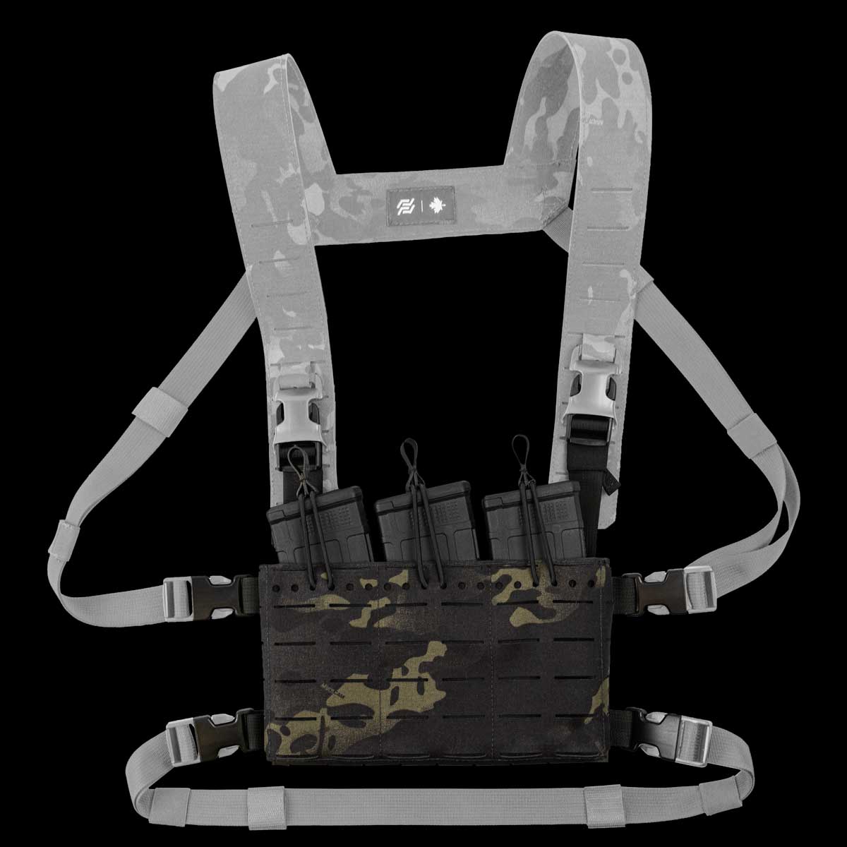 The Kangaroo Chest rig is a versatile chassis that can be used with the H-Harness or armour carrier placard systems. The rig accepts gear inserts so you can easily tailor your loadout.